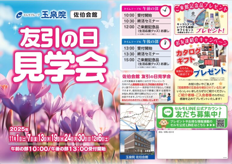 さて玉泉院 佐伯会館では11月も 友引の日見学会を開催いたします!