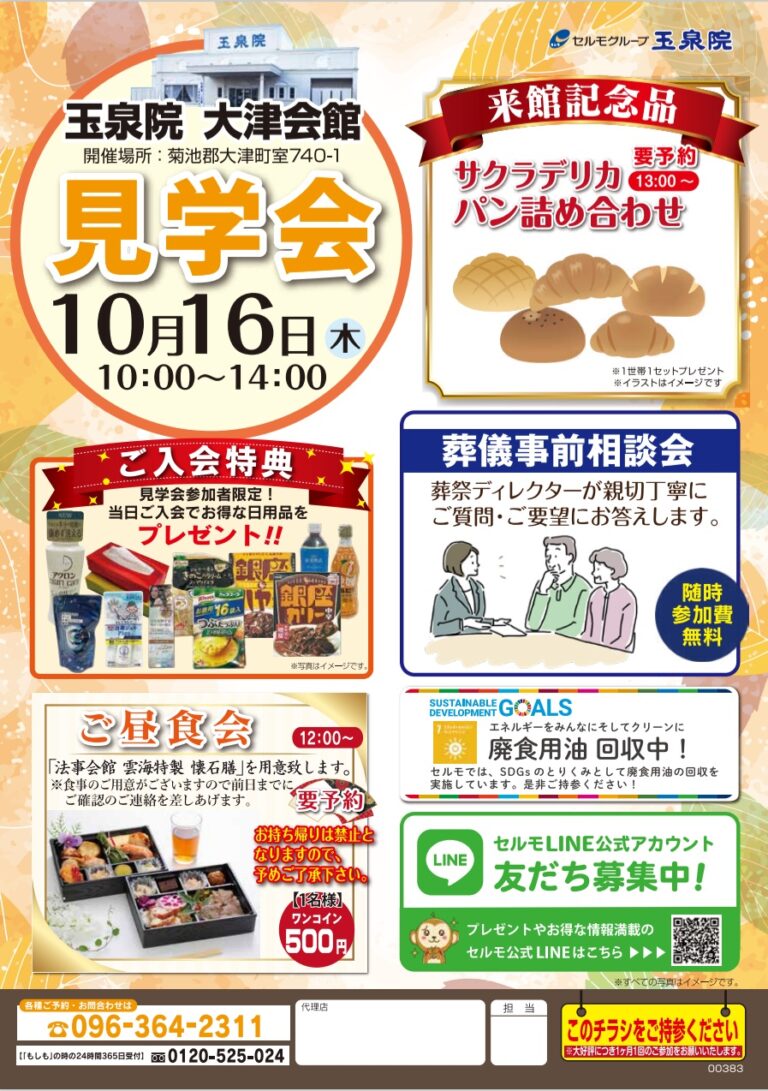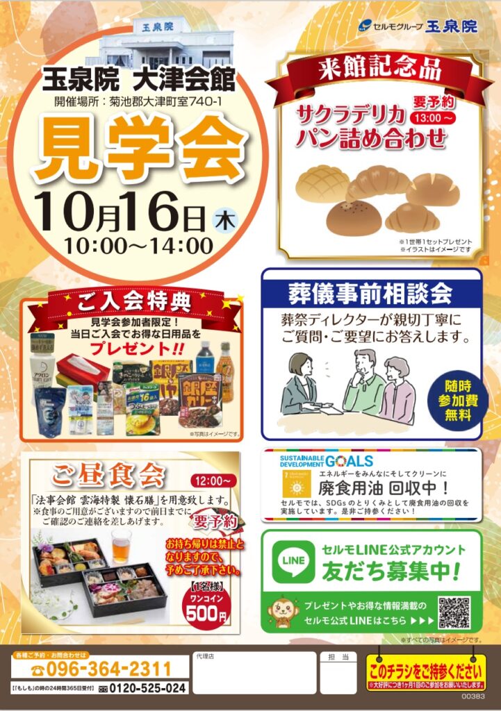 【日程】 10月16日(木) 【時間】10:00~14:00 【場所】 玉泉院 大津会館