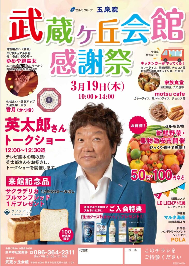 ▼特別企画 ・英太郎さんトークショー(12:00~12:30) ・キッチンカー出店 ・出店・体験ブース